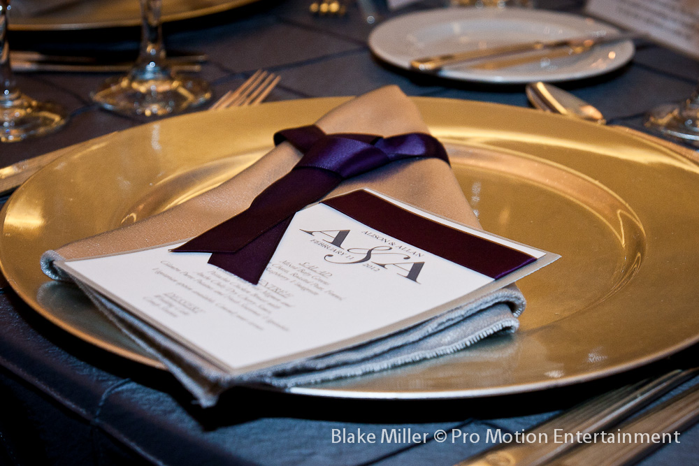 Allan and Alison celebrated their all-inclusive wedding day at the Hilton Torrey Pines in La Jolla, CA.  The wedding ceremony was outside an the Parterre Garden followed by a Cocktail Hour inside the Foyer of the Grande Ballroom. We helped light up the room with Blue Uplighting along with a Custom Gobo Monogram that was also further highlighted with custom surrounding light effects.  It really made the otherwise empty air wall really stand out – good thing since the focus point was right there with Alison & Allan’s table right underneath.  Dinner, Dancing and the rest of the wedding reception was a great one.  A custom mixed Father Daughter medley was a big hit (See below).  The wedding reception was was highlighted at the end with Allan and Alison coming out in chef hats to deliver a full cart of Sliders & Fries for the guests to enjoy as a little parting gift.