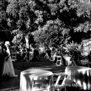The Ceremony was held in the Walled Garden which provided a quiet, secluded area for them and their guests. Music was supplied on the guitar by a close friend. After the ceremony, guests were escorted tot he Lawn House where cocktails and appetizers were supplied. This area is perfect for as it backs up to their “Palm Canyon Rainforest” complete with waterfall in the background. We then moved guests to the lawn in front of the Victorian Gazebo which acts as the reception site. The dancefloor was situated in the corner, underneath a large tree which acts as a great surrounding for the reception.