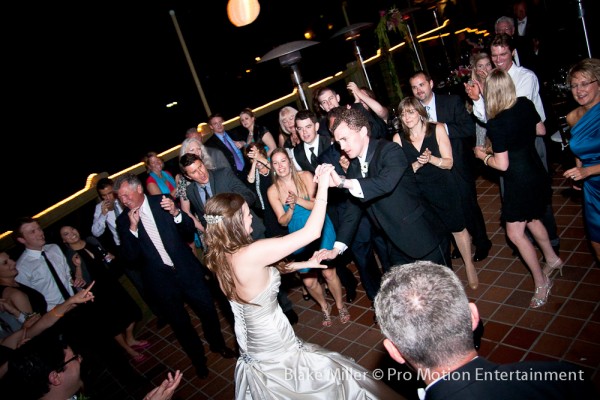 The wedding ceremony was held outside on the main patio. Following, guests were escorted inside the restaurant for Cocktails and Hor’dourves where a groovy cocktail mix of 80s, 90s and 00’s songs played, while the staff “flipped” the patio for dinner. We sat guests and went through the Wedding Party Introductions right into Ryan & Erin’s first dance and then into Dinner. Following dinner, we started up Dancing outside on the patio with the Family Dances and into Open Dancing.