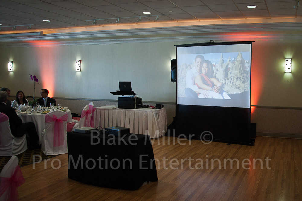- Video Slide Show setup for Reception, sound integrated into DJ System